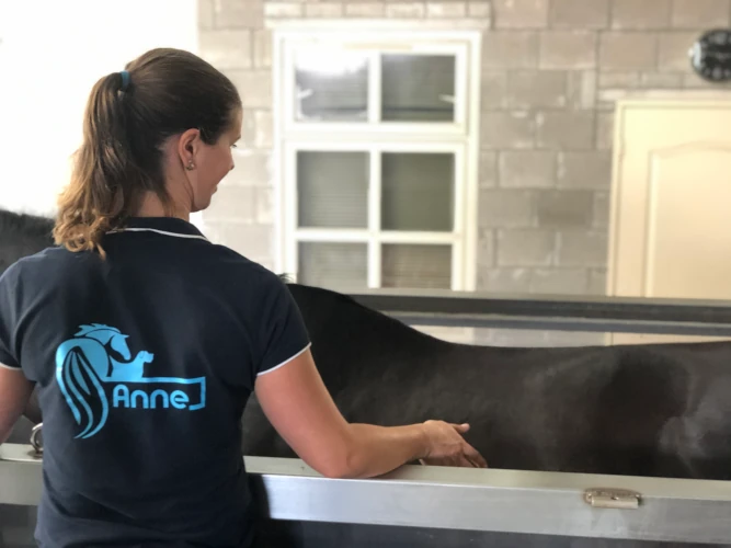 Bij de eerste sessie is er een intakegesprek waarin we kijken naar klachten en trainingsdoelen. Daarna beoordelen we de bouw en spierontwikkeling van het paard en bekijken we het bewegen op harde en zachte ondergrond. Zo sluiten we eventuele kreupelheden uit.